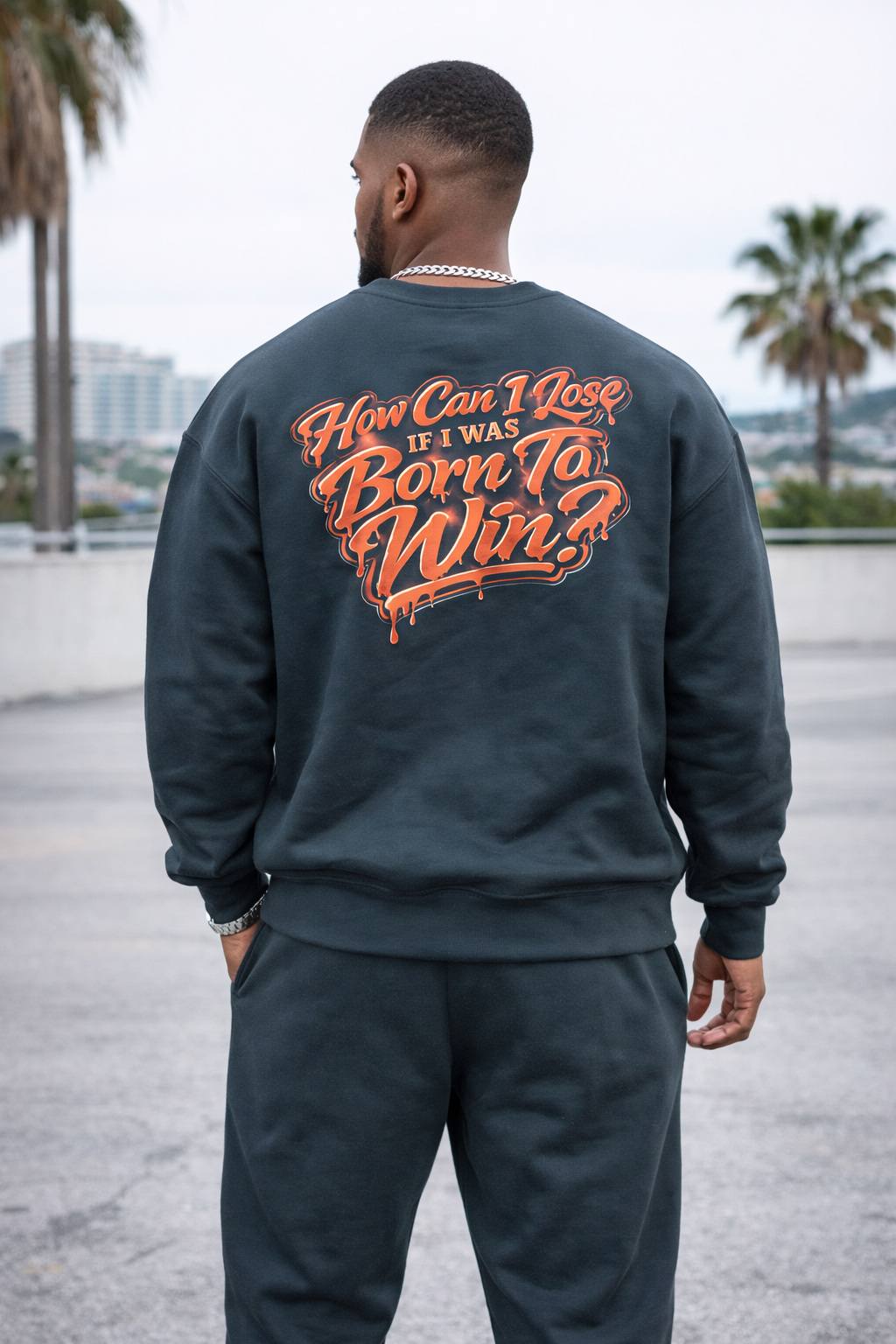 The Born to Win: Bloodline Set is a bold statement piece featuring a premium black sweatshirt and matching pants combo. The back showcases "How Could I Lose If I Was Born to Win" in striking bloody letters, embodying the fierce energy of your legacy. The front displays "Born to Win" in vibrant red embroidery, a constant reminder of your unstoppable mindset. This set represents more than clothing—it's a declaration of your bloodline, your determination, and your refusal to settle for anything less than victory. Perfect for those who wear their confidence as loudly as they live it.